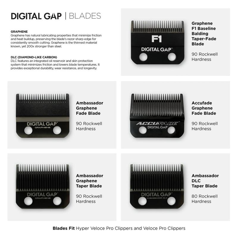 COCCO F1 Digital Gap Graphene Taper Fade Clipper Blade ADGF1-G Replacement for Hyper Veloce Pro Veloce Pro & Pro BLDC Clippers